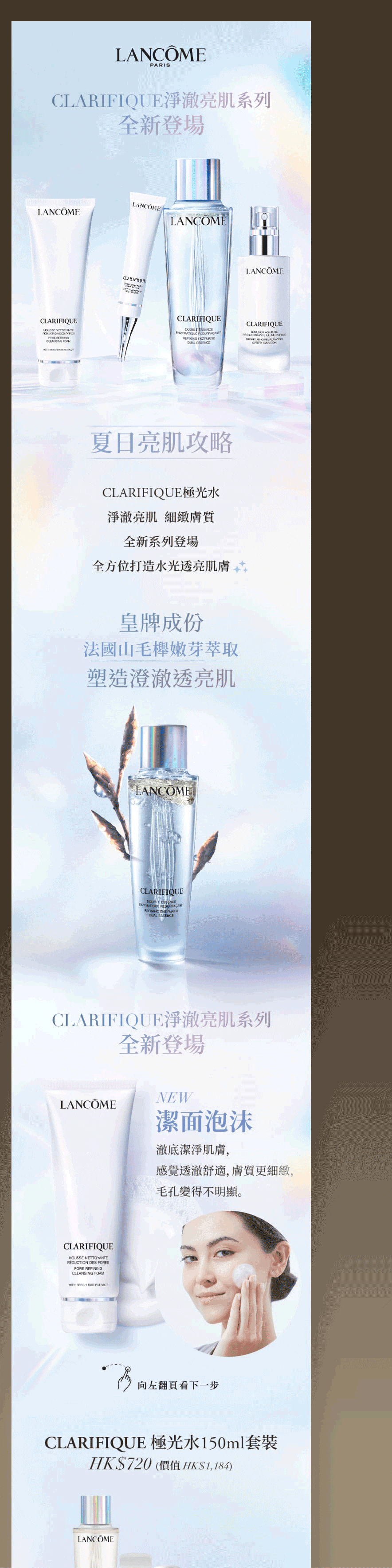 Multiple series of email marketing artwork designed for Lancôme, promoting their ABSOLUE Revitalising Rose skincare collection, Cushion Kit and CLARIFIQUE Brightening product collection.